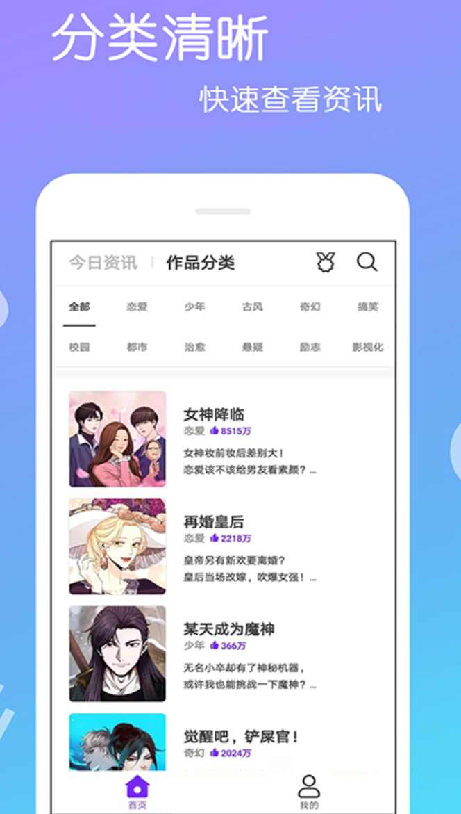 是一款非常受欢迎的精品原创漫画阅读平台,这里的漫画都是正版授权的,而且无需大家充值就可以免费阅读漫画。并且这里面的漫画类型丰富多样,你在这里想看看都能找到哦,大家阅读漫画的时候不会出现广告,也没有断章的可能哦。