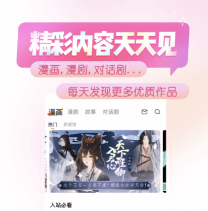 该app收录了各种不同类型的漫画,你可以通过关键词的搜索去定位你喜欢的漫画类型,或者去类别专区进行挑选。每天都会有新的作品更新,让你再也不担心看完没有新作品看了。