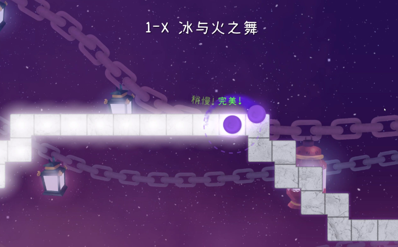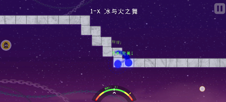 然后需要注意游戏的轨道变化。在1-X 冰与火之舞中,轨道会有不同的形状和颜色,表示不同的事件。例如,蓝色的轨道表示旋转,会让行星转向;黄色的轨道表示加速或减速,会让行星变快或变慢;红色的轨道表示增加或减少行星,会让行星变多或变少。你要根据轨道的提示来调整自己的按键节奏和方向。