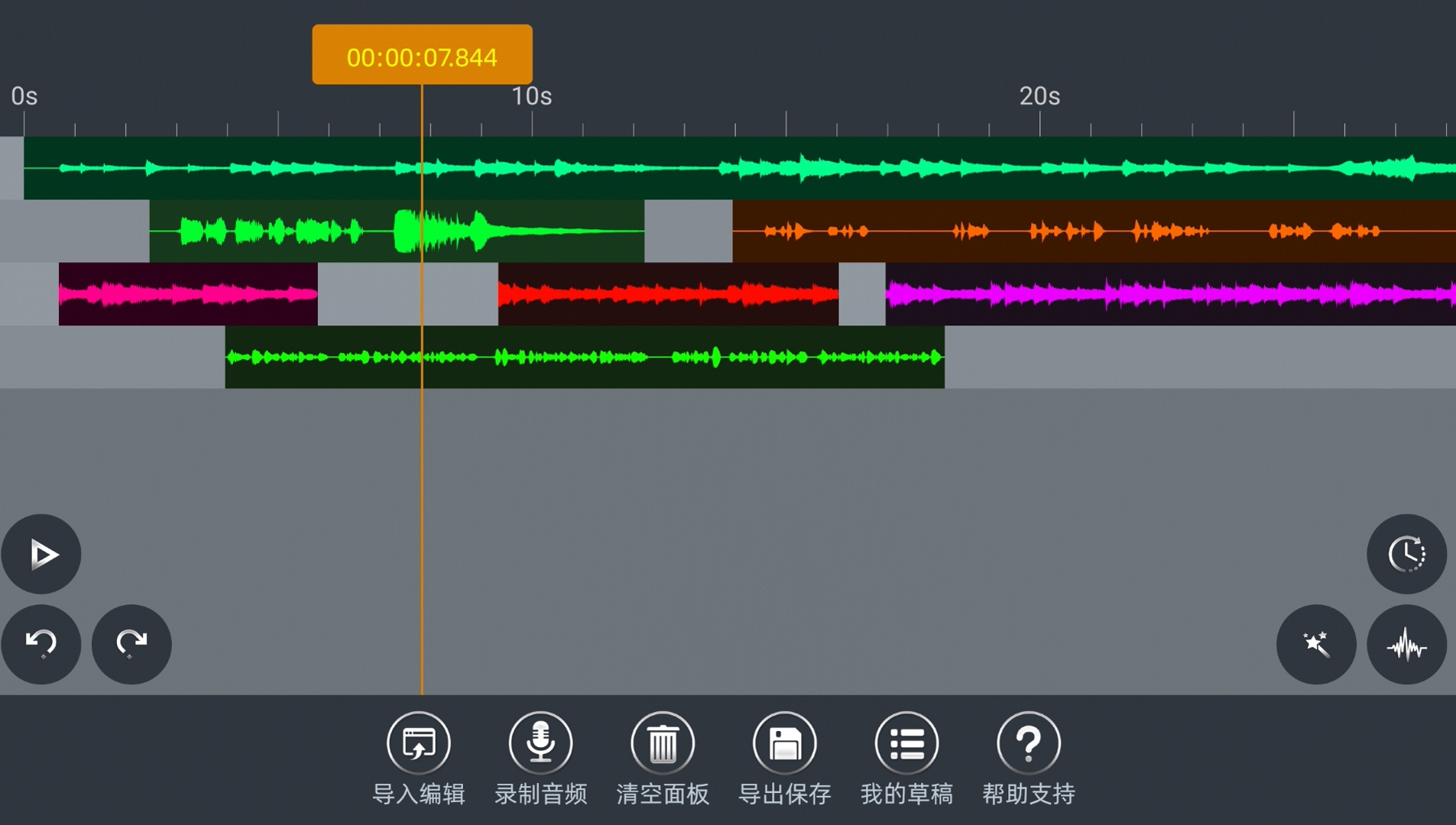 该APP是一款简单但是非常实用的音频处理应用,即使是新手小伙伴,也可以轻松使用它来编辑自己的音频文件,让它达到自己的预期效果,可以把自己想要的音频提取出来,并进行适当的裁剪、拼接、混合等,在完成了作品后,就能够将其转换成文档来导出使用啦!