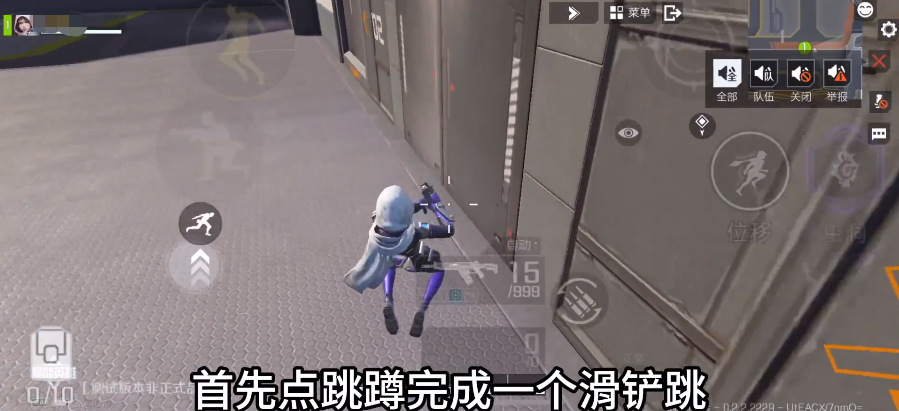 再来讲讲蹬墙跳的具体步骤,第一步就是通过跳蹲然后让角色做出之前图里的那种滑铲姿势,这里有一个要点就是跳蹲的时候尽量与墙近一点,同时人最好能够与墙面保持平行。