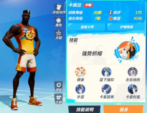 这个球星就比较适合喜欢在内线进行得分或者选择枪板以及盖帽,在内线的时候,就是卡佩拉的天下了,玩家们在使用这个球星的时候可以达到很轻松的就保护好篮球板,自身的弹跳能力非常出色,所以在比赛过程中可以使用盖帽来阻挠对手进行投篮,同时自身的灵活程度让他可以在内线的时候轻松的帮助队友进行卡位,自身较强的素质数值也可以让他在比赛中轻松拿下扣篮分!