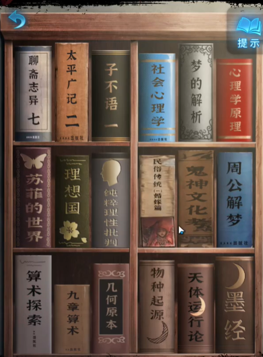 最后在来陶家中,在玩具中放上全家福和方块,这时玩家在调查地面时可以获取到毛毛虫玩偶,在之后的生肖圈解密中大家只要把老虎放进其中按照得到的线索点击就可以了,之后就需要大家切换场景来到教师中,将得到的大头贴道具贴在皮影头上,在欢乐音乐的陪伴下放置蜡笔和画纸在课桌上,按照图中的顺序摆放书籍,将得到的方块道具放置在魔方上获取蛹,根据图案的提示让雨点与物件的顺序一致,然后在恶梦石住处中按照正确的顺序摆放虫玩具、小包和蝴蝶就可以通关了。