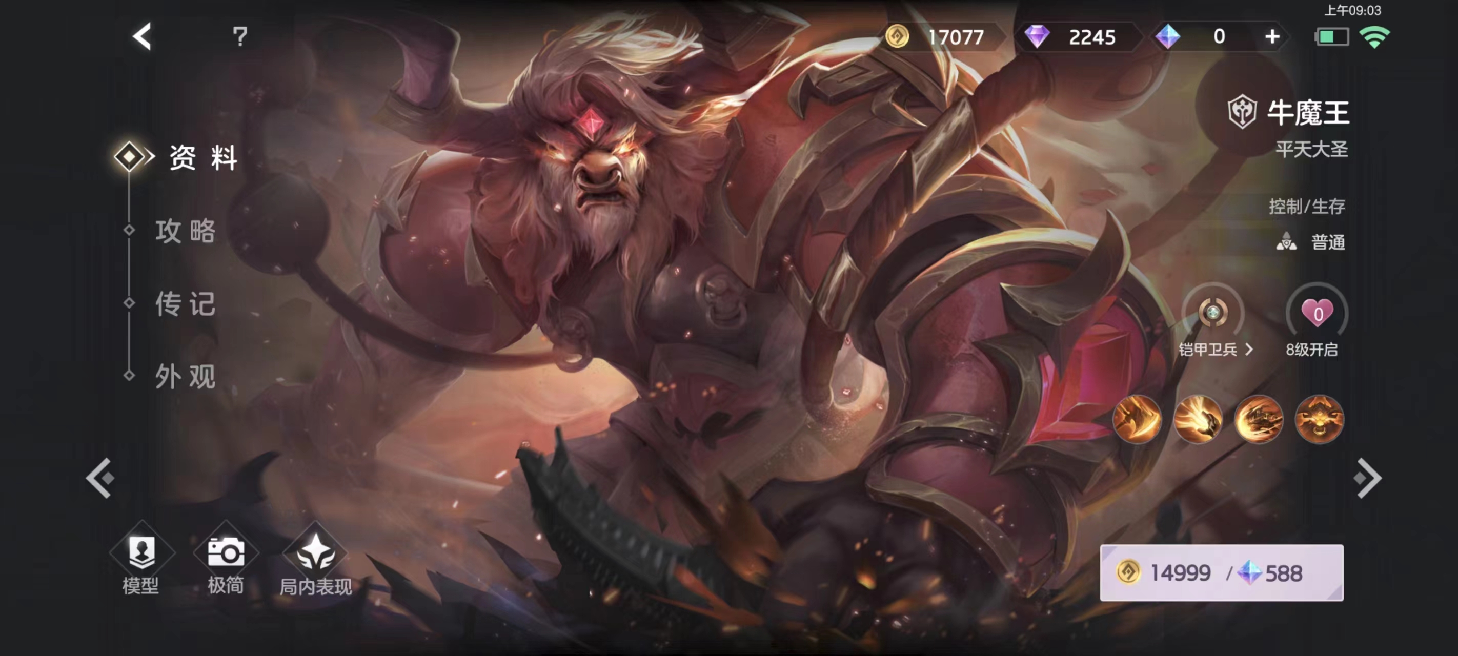 牛魔王:它是一个冲阵能力和控制能力都极强的坦克,被动还提供了它无与伦比的反打能力,只要血量掉到30%以下就可以获得六秒狂暴,期间不仅获得巨额回血和攻速,而且普攻还能减少技能CD,可谓是回光返照了!