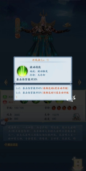有禁魂的敌人后续被击杀是没有办法再次复活的哦,而第一个被动的效果其实只是针对暴击的,在被动触发的时候孔雀明王自己的攻击要是触发暴击,那么在此次的伤害上面囧提升30%的数值,最后一个被动效果算是增益,使用之后该英雄的攻击上面会提升15%,而且搭配上面的被动在暴击触发的几率上也会提升5%的数值。