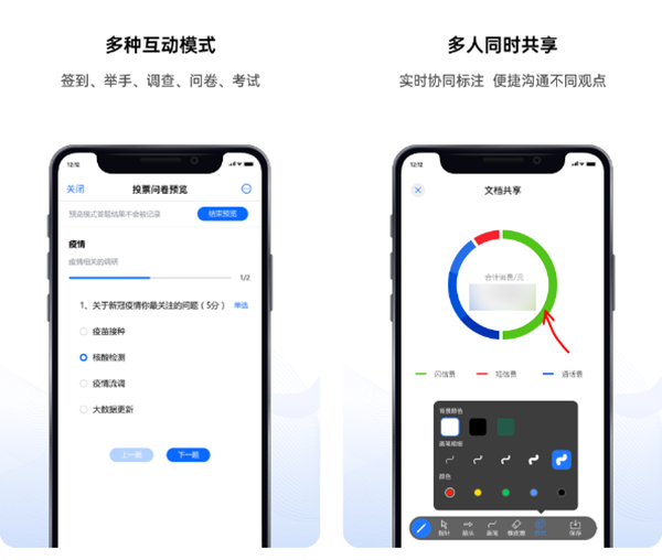 通话和在线视频质量非常优秀,不会出现马赛克、卡顿等情况,软件还能够添加模糊或者是虚拟背景,根据人像移动自动调节,保护我们的隐私。另外这款软件还可以直接导入文档文件进行演示,非常给力。