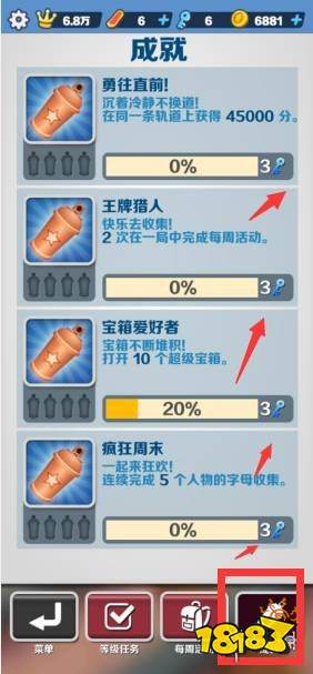 2、玩家也可以通过完成任务中心的成就来获取钥匙,完成每个成就会解锁3把钥匙,性价比很高。