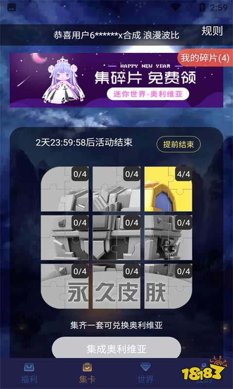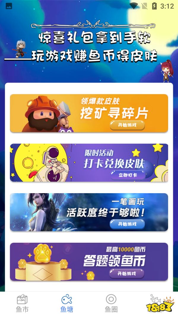 【福利】轻松兑换好礼 【集卡】神秘集卡挖矿 【兑换好礼】人人都能领取,快速兑换皮肤 【丰厚奖励】邀请好友体验。