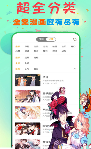 这里的漫画都带有超高清的画质,而且种类繁多可以自由选择,还拥有大量的全彩漫画可以阅读,大家可以直接搜索自己喜欢的作品,一些经典的漫画都可以直接看到完本。