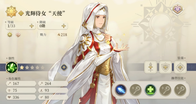 聊完了输出角色,接下来给各位推荐一位奶妈角色。如果要在史诗角色中找到一名无法替代的奶妈角色,那么非光辉侍女“天使”莫属了,这名角色不但可以凭借其主动和被动技能来实现群体回血的效果,更是能给队友赋予双防上升、免伤、驱散减益效果等多种正面效果,除此之外,她还可以凭借其被动技能“苦修”,让对其攻击的敌人降低伤害,并且能够回复自身能量,考虑到游戏中本身奶妈角色数量就不多,而这名奶妈的多功能性可以保证其一人就能身兼多个功能,外加首充即送的亲民获取难度,实在没有不练她的道理。