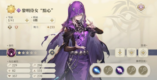 最后给大家推荐一名另类的辅助角色:黎明侍女“黯心”,所谓辅助,并不一定非要给队友上buff,通过给敌人上debuff来提升队友的进攻能力也是一种辅助,而黯心显然擅长此道——她可以为敌人赋予属性下降、生命流失,乃至减疗、封技等多种不利效果,使得队友的生存压力骤减,有了这名角色,各位越级挑战副本就成为了可能。