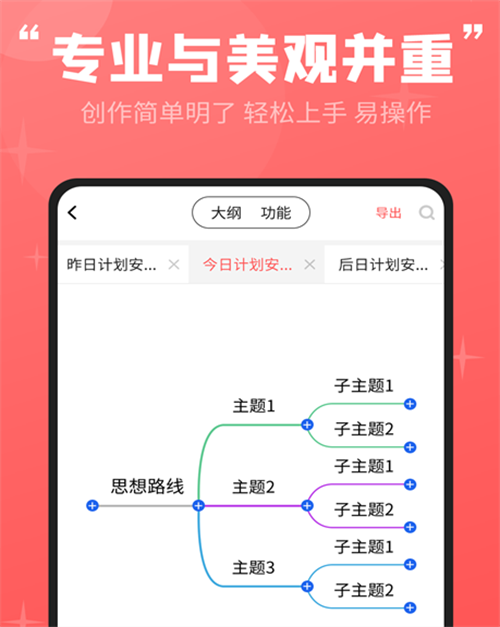 软件的特点就是简单好用,就算是没有什么基础的小白也能快速的上手去进行思维图的绘制,同时让大家能快速的专注于思考之中,包括软件的研究以及结构上的创新等,这些功能也都会给到大家哦。