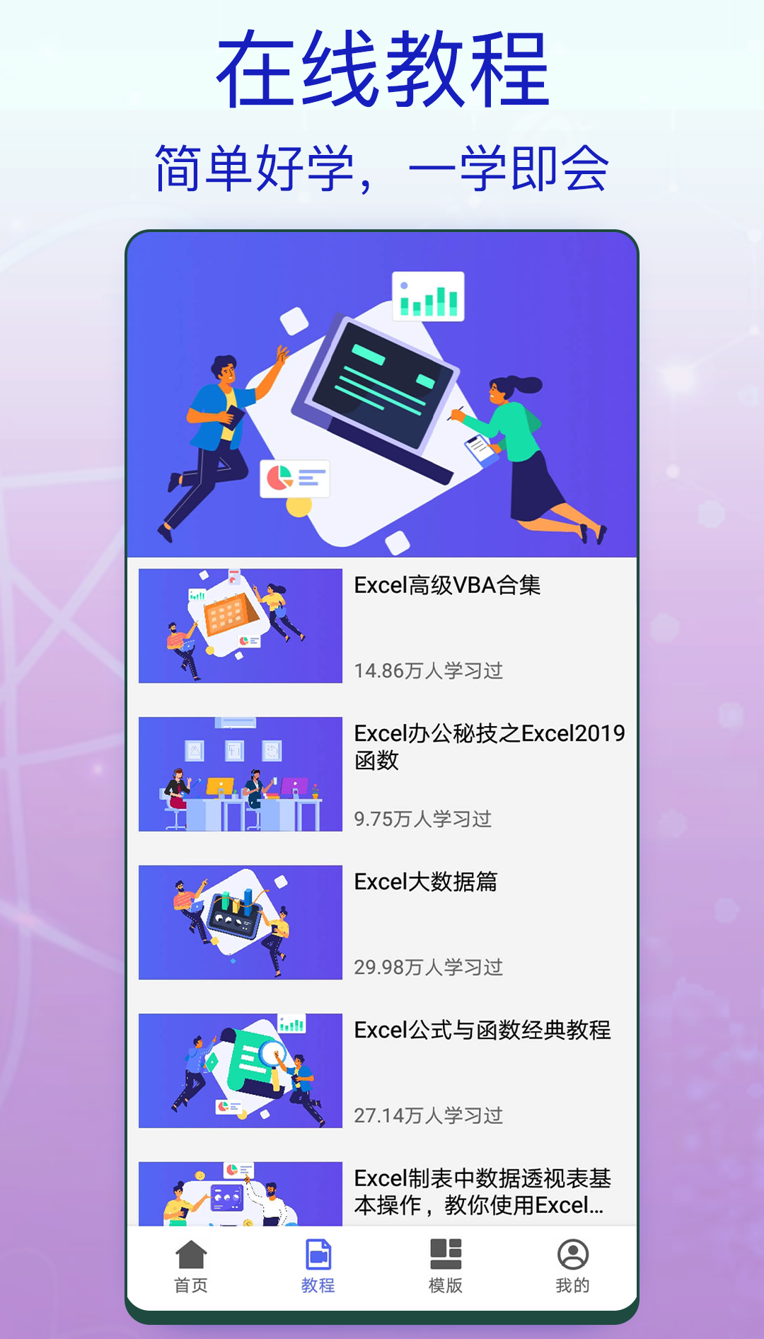 相信大家在办公的时候一定会遇到制作表格这种事情,那你就需要有这样一个制作表格的APP,可以对表格的内容和表格进行编辑和操作,里面还有非常多的制作表格课程可以让大家免费学习。