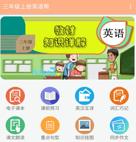 这是一款针对小学三年级开放的点读和学习类软件,大家在这里可以去引导学生去进行课文的朗读,同时还有着学生课文的预习以及各类不同单元知识的归纳与总结,包括词汇的学习也会简单很多。
