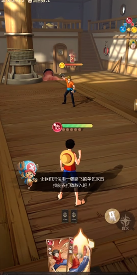游戏从动漫中两年后的剧情线开始,进入游戏后可以享受主城生活,还能与许多动漫角色进行航海日常,游戏里面的动漫角色有路飞、娜美等原著角色。游戏整体采取了策略卡牌的玩法,每个角色都有战斗型卡牌,在战斗时玩家可以抽取随机的技能卡牌,只需要选择技能卡牌便可以对敌人释放技能,画面也会出现炫酷的特效。除了战斗之后,还有一些日常生活,每逢战斗结束,都会举办派对,可以与伙伴进行互动。