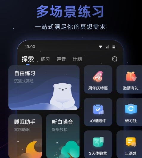 软件里面拥有海量的音乐能让大家去选择,同时还有冥想练习等给到大家,帮助用户快速的舒缓身心,缓解自身的压力以及交流,对于那些希望能提高专注力的朋友来说,它也是一个不错的选择。