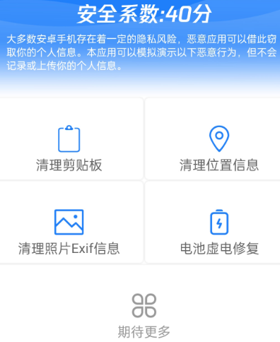 使用手机时经常都会遇到各种恶意垃圾、恶意短信,如果没有及时的清理,还有可能会出现诈骗的现象。这款软件专门对环境进行监测,具有隐私数据清理功能,有反诈信息提醒。