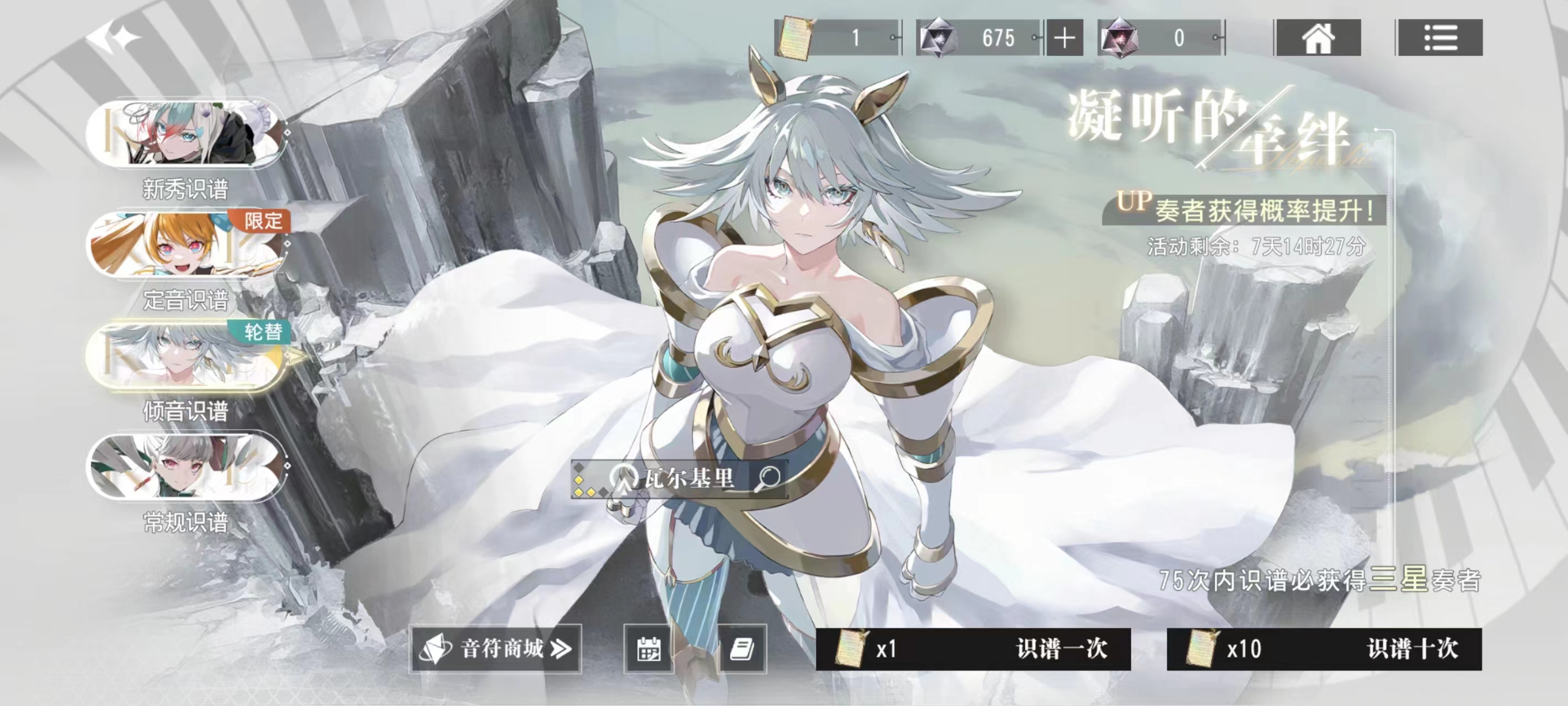 第三个卡池则是每隔一段时间就会轮替的卡池,名为凝听的牵绊,和巨人凯旋一样它也是75次之内必出三星,并且也同样有着单一奏者出货率提升的机制。