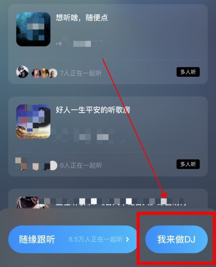 4.或者点击“我来做dj”,自己建立听歌房间,可以选择私密或者公开;
