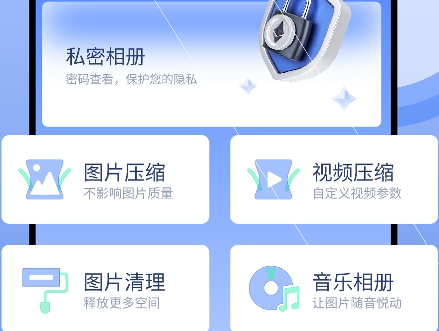 这是一款实用的手机相册管理类工具, 在里面大家能优雅展示属于自己的照片,包括利用加密的方式来保存私密的作品,其数据也很是安全与可靠,包括强大的图片编辑以及压缩功能也会给到大家哦。