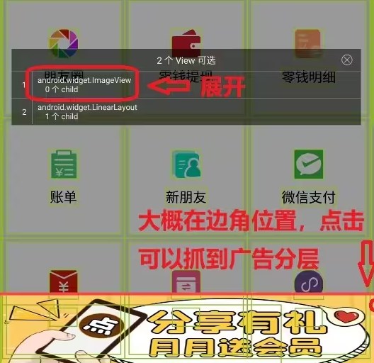 3.接着返回软件首页查看布局排列,分为多层,自己点击,框出存在广告的窗口。