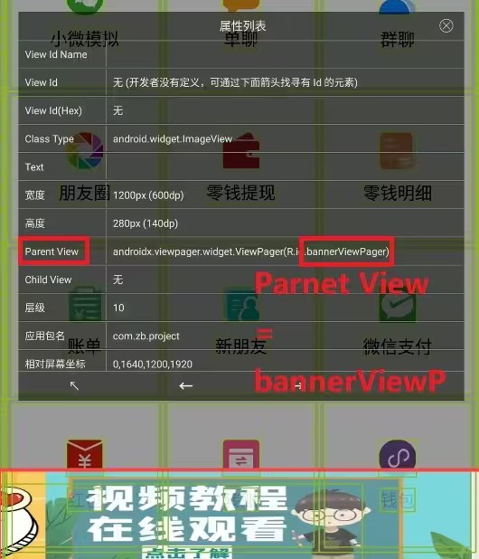 4.记录该广告的窗口代码,可以很直观的看到 Parnet View = bannerViewPager