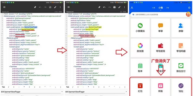 6.查看结果进行简单分析,运用简单的改0思路来消除bannerViewPager项目的窗口。