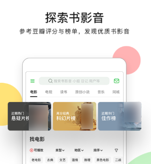这款软件相信大家不会陌生,事实上也是目前国内比较权威的评分系统,其中书影音的探索频道深受很多用户的欢迎,不仅可以看到评分,更是会自动推荐一些我们可能感兴趣的内容。