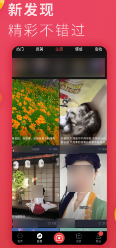 在发现栏目中可以快速刷到目前比较热门的一些短视频,更是可以直接关注生活、搞笑、情感等多种标签,从而获取到类似的好看作品。