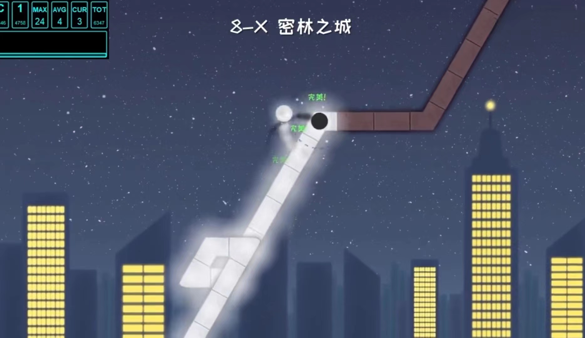 在游戏当中玩家们是可以随意闯关的,每一个关卡对应着不同的音乐故事,这些音乐都有着自己独属的节拍点,玩家们如果想要顺利通过关卡要做的就是聆听这些节拍点寻找出他们然后操控小球再接拍点落下去的瞬间前进,稍微难的地方就在于玩家们听不听得出这些音乐的节拍点,同时手速跟脑子能不能反应的过来,在这款游戏当中玩家们可以看见制作团队巧妙的将节奏以音乐闯关的形式展现在玩家们眼前。