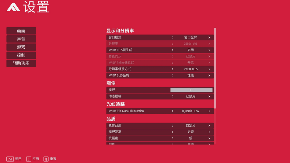 说到dlss相关的设置,还有一项比较重要的设置,那就是dlss品质的设置,这里建议大家选择性能选项,这样就可以保证游戏是以帧率优先,不会影响到各位画面的流畅;除此之外,光线追踪功能建议大家量力而行,这一项功能还是相当吃硬件的,如果各位对显卡性能不是很自信的话,那么选择低性能就可以了。