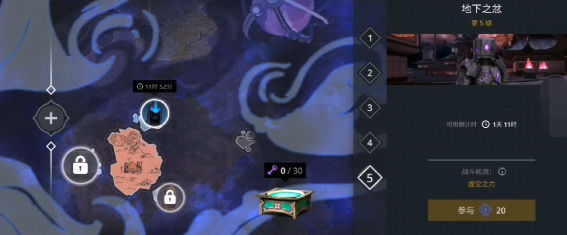 玩家要点击主页面右上角“突袭”的按钮,是一个带旋风的图标,点进去就可进入虚空之境。在虚空界面的右下角有一个绿色的箱子“虚空宝箱”,玩家下一步就是点击宝箱。