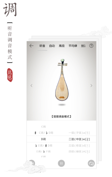 这款明月调音器是能够对我国各种民族乐器的调音,定弦等难题提供智能调音服务的一个软件。像一些古筝,胡琴,琵琶,扬琴,大提琴等传统乐器的调音,在这个软件上都可轻松完成。同时这个调音器的设计和校对,是根据民族乐器音色采样数据,可以有准确的调音。