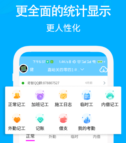 对于在工地上班的人群来说当然希望每天能记录下来了,毕竟工地上班特别的辛苦,如果忘记记工的话就相当于一天的工作白干了。所以可下载这一款能进行工地记工的软件支持多种数据查看,还有很多的记工模式,比如图表类型的或者是表格类型的,还可进行多功能项目设计,特别的人性化。