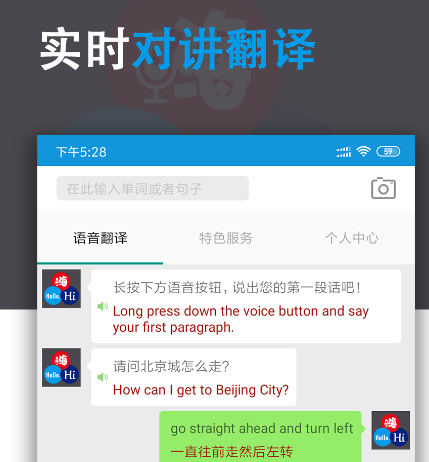 该软件支持众多的翻译模式,同时还有边说边译。在到一个地方不了解对方说的方言是什么意思,就可通过同声传译的方式,边说边译,可提高跟沟通的效率。