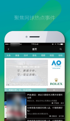 软件为我们汇聚了全球范围内关于网球的一些热点事件和新闻资讯,更是可以直接在首页看到目前世界排名情况。如果遇到一些大型赛事还会专门开设专栏为我们集中将消息公布出来。