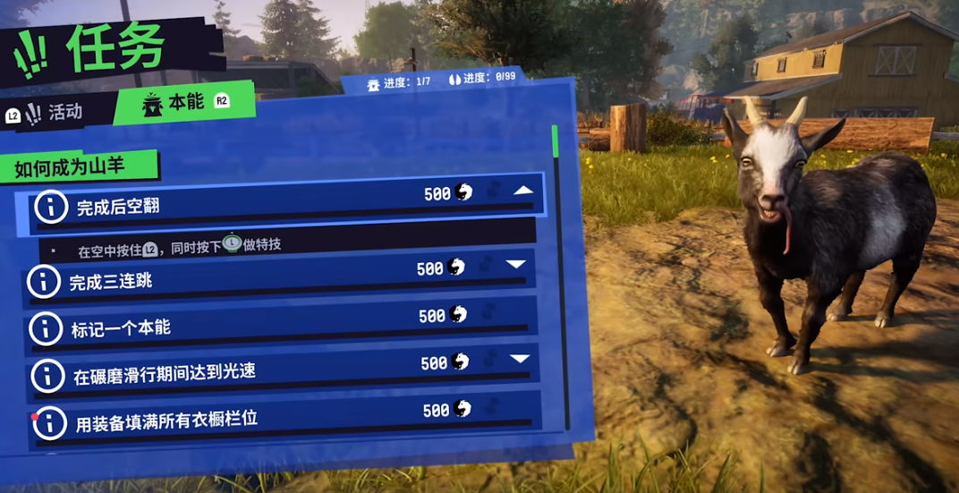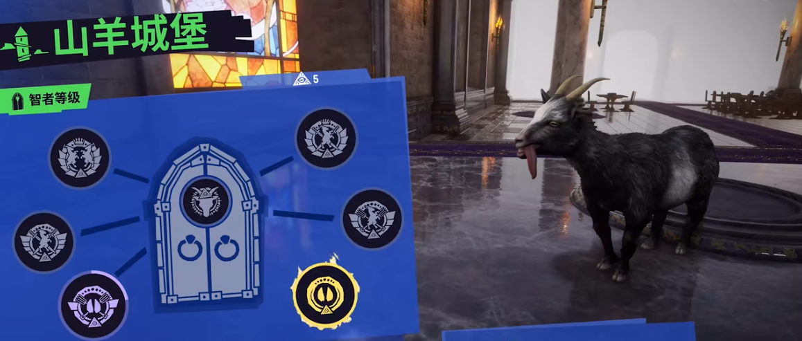要完成这个任务,玩家需要前往创始人小岛,这是一个位于地图左上角的小岛上面有一个金色的雕像似乎是游戏开发者的形象,岛上有一个石门,玩家需要叫一声就可以打开石门进入,里面有一个角色创建器玩家可以选择不同的外观、配件、服装和能力,来打造自己独一无二的山羊角色。玩家还可以选择不同的能力,如飞行、隐身、变大等。这些选项都会影响到玩家在游戏中的表现和体验。