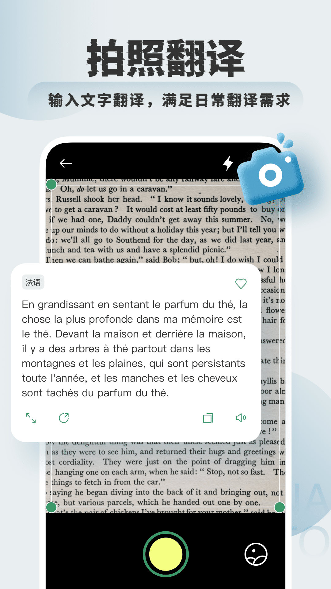 这是一款可以进行智能翻译,也可以提供快速翻译功能的工具,它能够让众多出国的游子直接和当地人的无障碍沟通,也可以通过输入单词和句子的方式得出有效的翻译结果,无论是外出购物,生活,都可以有一些简单的短语进行学习。