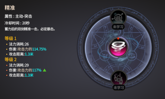 这是一个比较灵活的武器,而且武器本身搭配上技能是可以百分百暴击的,对于暴击护甲不高的敌人来说,这个武器绝对是非常致命的;在技能搭配上,小编推荐大家选择【鬼魅】,此技能可以对敌人进行一次突袭伤害,在搭配上【精准】,配上此技能的百分百暴击效果,可以打出高额的爆发伤害;由于一些敌人的闪避效果可能比较高,推荐大家在使用双手剑的时候,最好是学习一下【怒意】,这个技能可以让自身在攻击的时候,短暂的提高一下命中效果,这样就不会空伤害了!