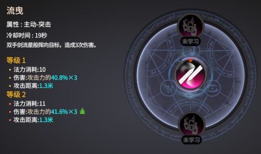 如果大家是在野外刷怪的话,那么在搭配【流曳】,这个技能是一个联机技能,技能释放后,可以对敌人快速造成三段伤害,由于战斗的时候,大家做任务都是在同一个地区中进行刷怪的,有时候会抢不过别人,这个技能就可以很好的刷完一只怪!而【背刺】技能就是双手剑最厉害的奥义技能了,大家使用的时候是需要等待58秒的冷却时间的,可以瞬移到敌人身后,对其造成致命伤害!