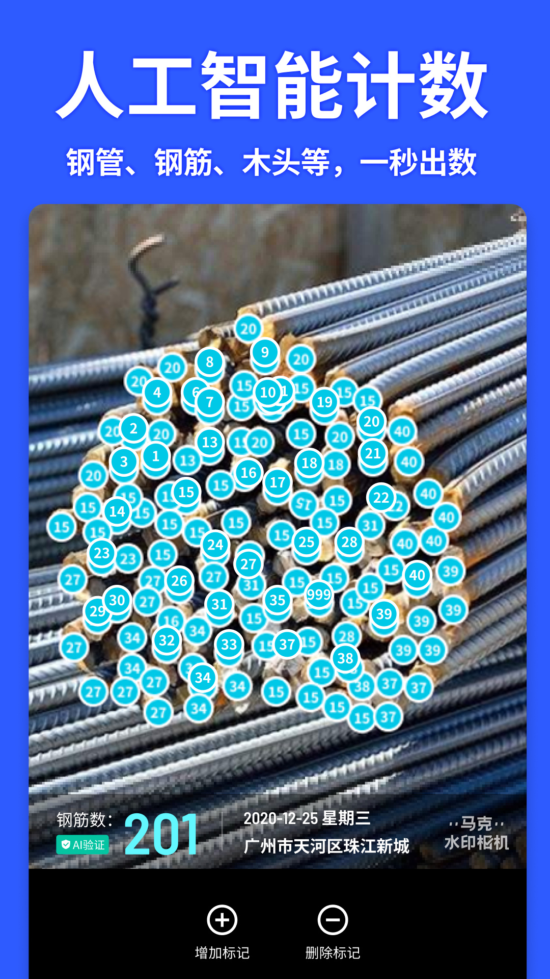 这款APP在各种工程场景当中应用非常的多,它可以只需要通过拍照就可以数出方木,竹签以及木棍,木材钢筋的数量,这些长条形的建筑产品其实使用品率非常的高,需要每天对其进行计数,也需要及时的对其进行数量的管理,