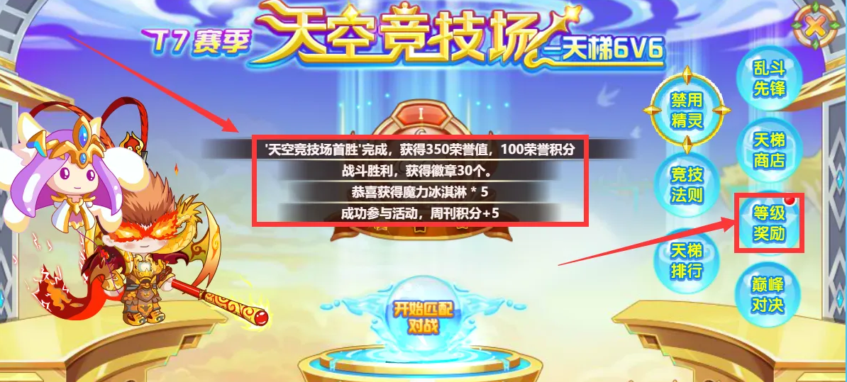 玩家在对战之前要进入匹配战斗的界面之后就开始进行战斗。一旦战斗结束之后,就进入到结算的页面,玩家通过战斗能够获得对应的奖励,相应的段位。此时建议玩家也可以直接去体验其他的任务,毕竟任务所获得的奖励是比较高的。而玩家再次进入天空竞技场之后,由于之前已经体验,此时玩家可以看到战斗中的场次战绩。