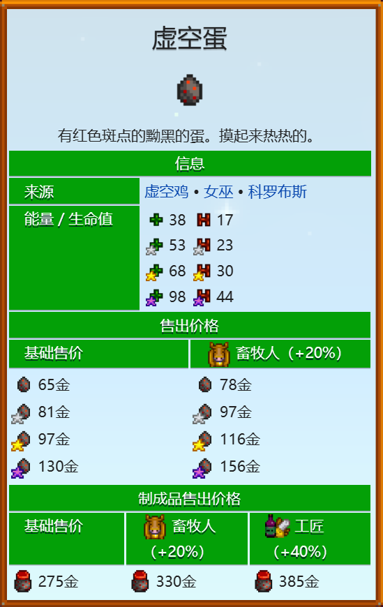 虚空蛋的第二个作用是可以给一些NPC。虚空蛋是科罗布斯和塞巴斯蒂安最喜欢的东西,他们都是比较难以接近的角色,如果你想和他们成为朋友或者恋人,就可以用虚空蛋来打动他们。科罗布斯是一个神秘的商人,他住在沙漠的一个帐篷里,只在星期三和星期五出现。他会出售一些稀有的物品,比如虚空蛋、星之果实、古代种子等。塞巴斯蒂安是一个宅男,他喜欢玩电脑游戏,经常待在自己的房间里。他是一个天才的程序员,有着自己的梦想和抱负。