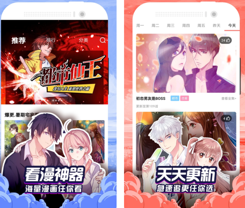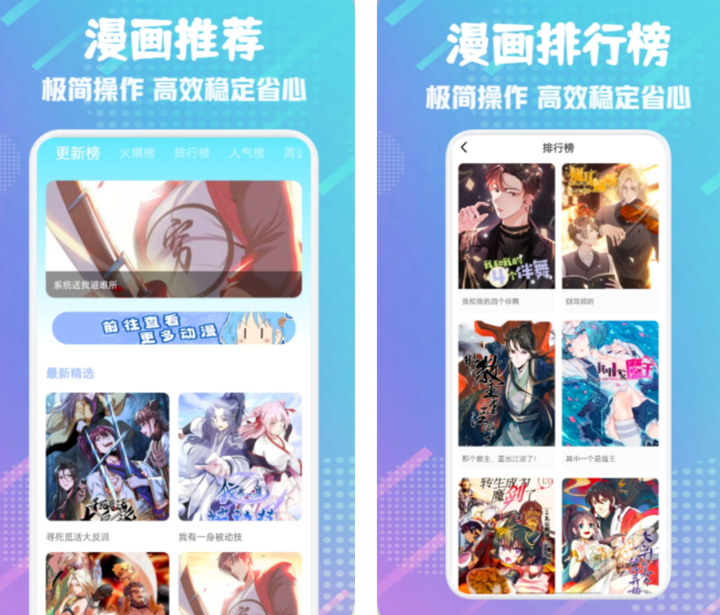 漫画更新速度快,看漫画无广告打扰,海量口碑国漫在线更新,而且还有漫画改编成的视频,让静态的漫画变成有声动漫,追漫更加有趣。
