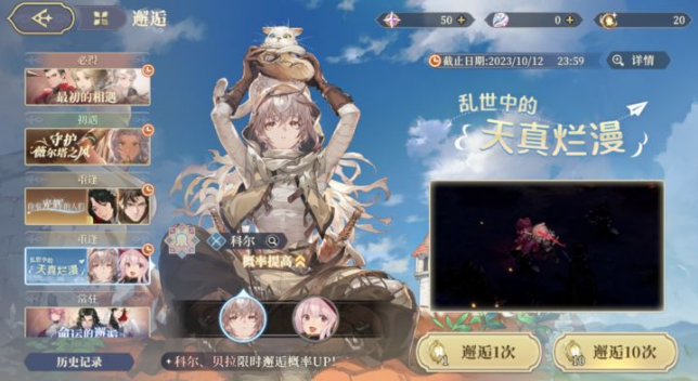 首先在开服之后,第一个up的卡池有两个,分别为科尔、贝拉双up的重逢卡池,以及萨曼莎和列奥尼德的重逢卡池,这其中萨曼莎是开服的人权角色,如果各位开局没有抽到她的话,可以考虑在这个卡池中投入一定钻石来抽她;在这两个重逢池之后,是游戏中的第一个初遇池诺诺薇尔,这名角色虽然在泛用性上不如萨曼莎,但作为赐个角色,其单点爆发还是相当强力的,如果各位队伍缺乏单体输出角色,可以考虑抽取。