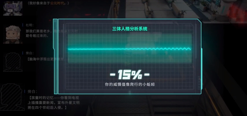 世界观也充分了保留原作的科幻特色,在基地中可以随处见到技术水平高超的机器人,同时它还结合三体人的威胁引入了独特的威慑值系统,如此一来,玩家在成长和探索的过程中,就能通过该数值清楚地感受到自己正一点点变强。