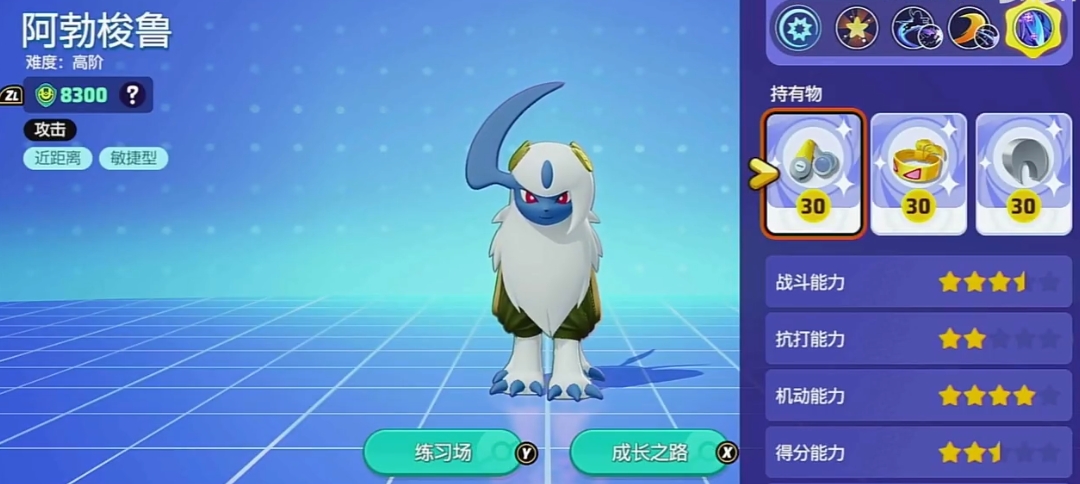虽然阿勃梭鲁是一个三星半的宝可梦,但是大家在上面可以在升级之后使用,毕竟这个角色的效果其实大部分都是在后期升级之后学会的,它的普攻是作用在第三次攻击上面的,所以前面两次普攻没有什么变化,在第三次攻击的是偶会直接转化为强化攻击,这个强化的攻击要是命中对方的话,那么造成的伤害会高一点,而且同时会降低对面刚才受击宝可梦的防御数值。