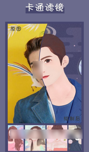 软件原生带有卡通滤镜效果,能够将我们上传的图片一键转换为不同的卡通模式,并且可以进行自由调节。软件还可以自己来进行卡通人物的创建,对五官样式进行修改。