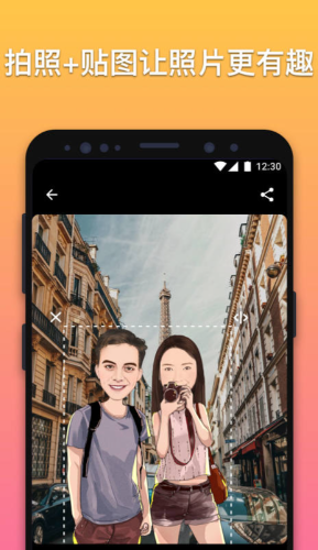 将现实和虚拟卡通人物无缝组合在一起,软件可以自动识别照片中的人物部分来转化为独特的漫画风格,其他部分则保留原装,从而产生强烈的视觉冲击力。