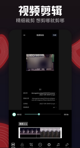 能够非常精细地完成视频裁剪,时间轴精确到毫秒来完成编辑,更是可以将音视频轨道分开按照自己的需求和条件完成修改。